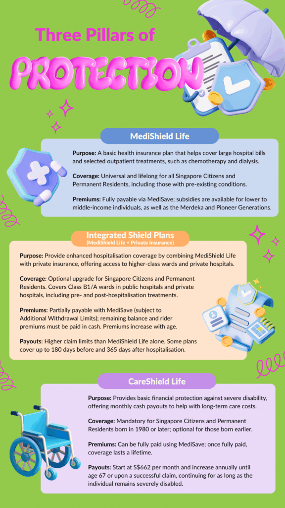 MediShield Life is your baseline health protection that covers all Singapore Citizens and Permanent Residents – regardless of age, health status, or how many times you’ve forgotten to reapply sunscreen.